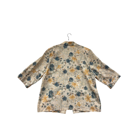 Joanna Plus Womens 2XL Floral Blazer Jacket Beige Teal & Yellow #6947