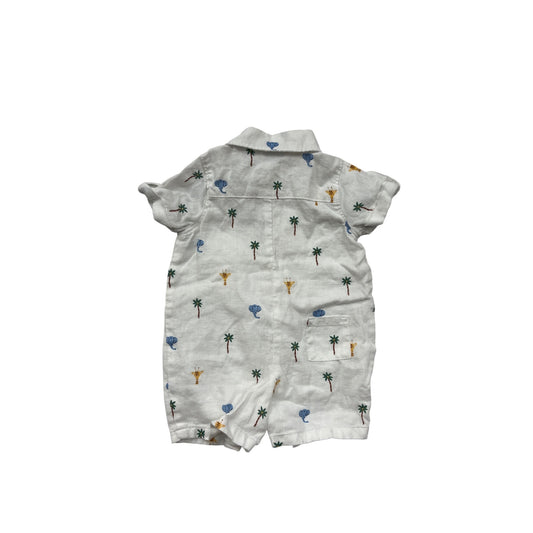 Baby Boy Janie & Jack Safari Print Linen Cotton Romper 0-3M Short Sleeve Button-Front #6830