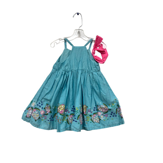 Isaac Mizrahi New York Girls Blue Turtle Print Dress With Pink Headband #748A
