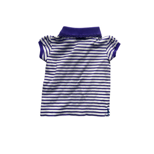 Ralph Lauren Baby Girls Polo Shirt 12M Purple & White Striped Cotton #9103