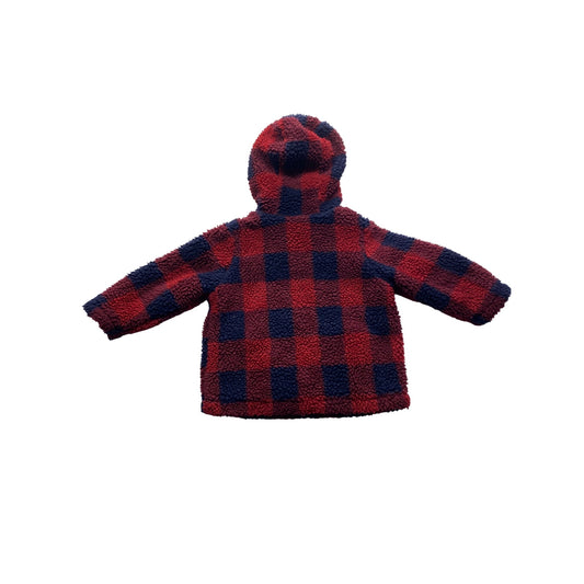 Ben Sherman Toddler Hooded Sherpa Jacket Red & Navy Plaid Polyester #7088