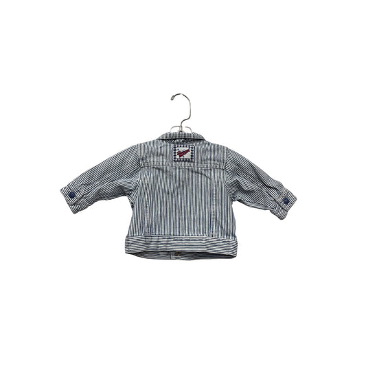 Baby Striped Denim Jacket 0-3M By The Childrens Place With Button-Up Front & Foldable Cuffs #6874