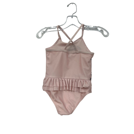 Disney Minnie Mouse Girls Pink One-Piece Swimsuit With Ruffle Back & Crisscross Straps #6596