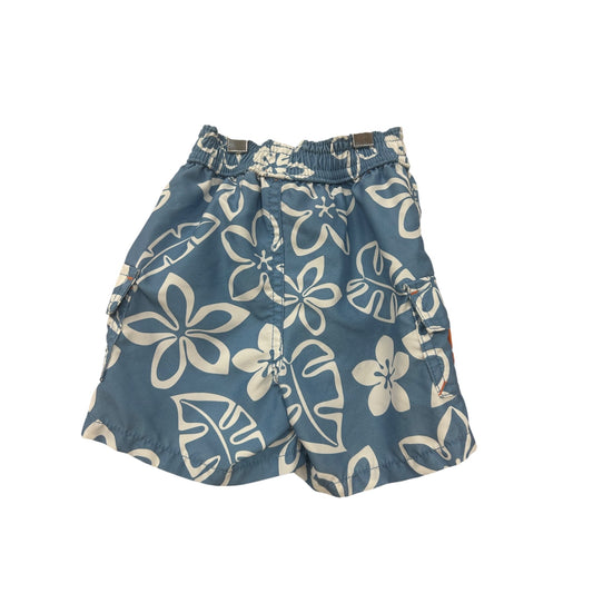 Baby Boys Gap Hawaiian Print Swim Shorts Size 0-3 Months Elastic Waist & Pockets Polyester Blue & White #6595