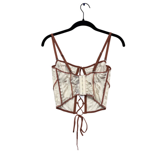 Out From Under Lace-Up Bustier Top In White & Brown Lace #881A