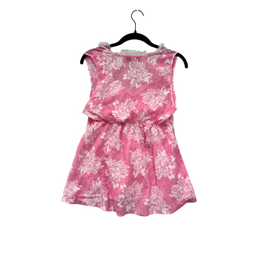 Betsey Johnson Intimates Pink & White Floral Sleeveless Babydoll Top M #8983