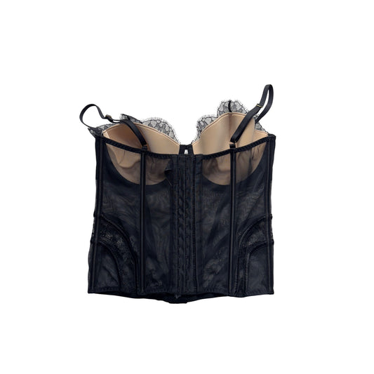 Victorias Secret Lace Bustier Corset Top 36D Black Mesh & Lace #291B