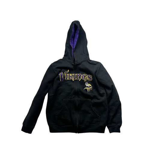 NFL Vikings Youth Black Hoodie Jacket With Purple Lining & Logo Size L 14/16 6486