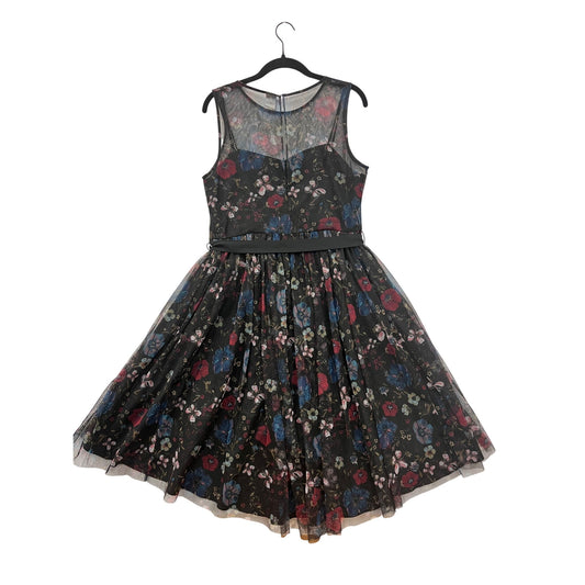 Disney Girls Floral Mesh Dress Black/Multicolor Size 12 Sleeveless With Sheer Overlay & Belt Accent #8089