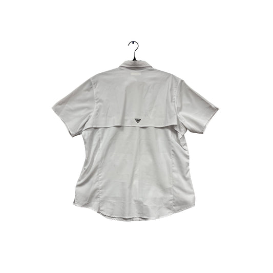 Columbia White Short Sleeve Button-Down Fishing Shirt L #655A