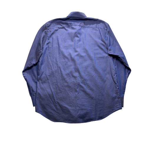 James Tattersall Shirt 17 1/2 Blue Pattern Long Sleeve Button-Up #9042