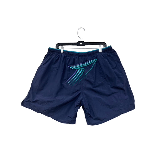 Vintage Speedo Mens XL Navy Swim Shorts With Teal & Purple Stripes #6855