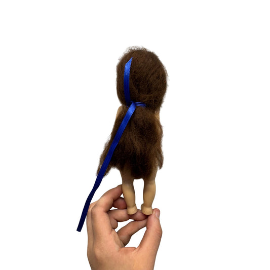 Vintage 1950s Hard Plastic Doll With Long Brown Hair & Blue Ribbon #422B