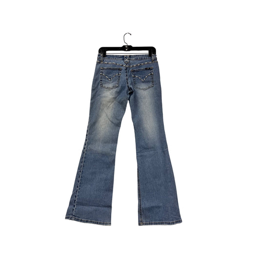 Women’s Y2K Angels Blue Flared Jeans Size 5 With Embellished Pockets & Faded Wash #6738
