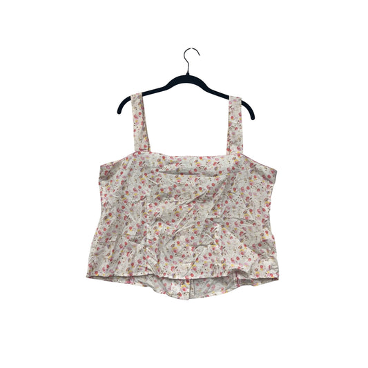 Vintage St. Johns Bay Floral Print Cotton Sleeveless Top XL Womens Button-Down #6761