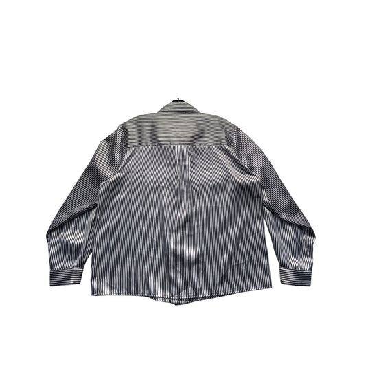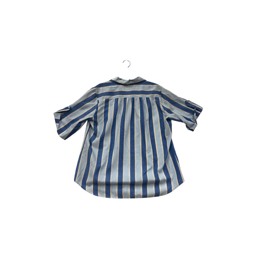 Vintage Miss Fashionality Blue & Yellow Striped Button-Front Womens Blouse With 3/4 Sleeves #6746