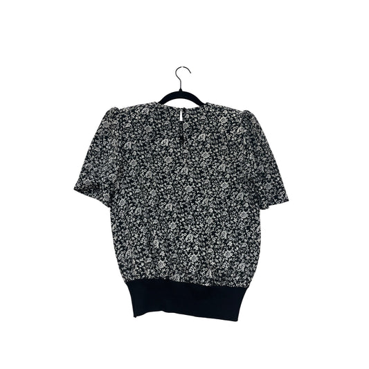 Vintage Womens Floral Puff Sleeve Blouse With Pocket Chain Accent By CB #6742