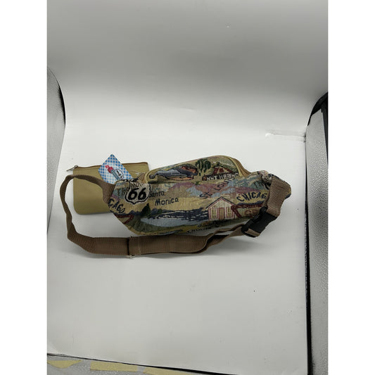 Vintage-Style Route 66 Tapestry Fanny Pack With Adjustable Strap & Zipper Compartments #6647