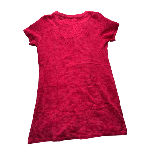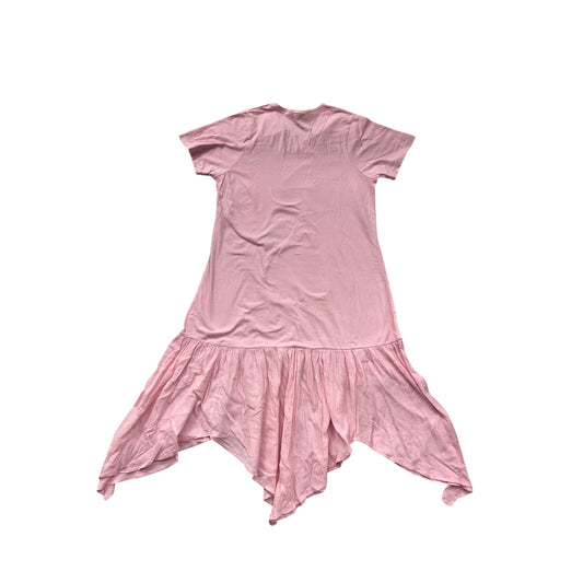 Peanut Punch Womens Pink Asymmetrical Hem Dress Featuring Floral Patch Graphic V-Neck Short Sleeves Size M #6918