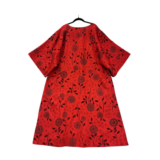 Red Floral Oversized Womens Dress By Couture L Black Lining Loose Fit V-Neck Short Sleeves #6869