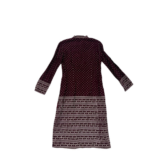 Maroon Polka Dot & Floral Print Long Sleeve Womens Small Tunic Dress #6685