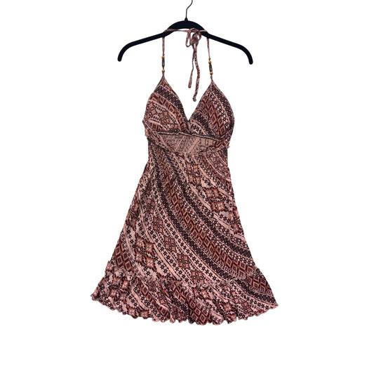 Guess Womens Medium Pink Geometric Print Halter Dress With Ruffle Hem #6687
