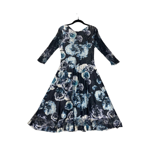 Komarov Womens Large Floral Print Lace Trim Charmeuse Dress 3/4 Lace Sleeves #6688