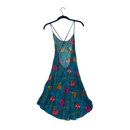 Rene Rofe Womens Medium Floral Print 100% Silk Slip Dress With Crossback Straps #6786