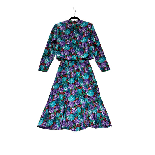 Vintage Medium 80s Starlo Floral Dress With Crochet Lace Collar & Long Sleeves #8017
