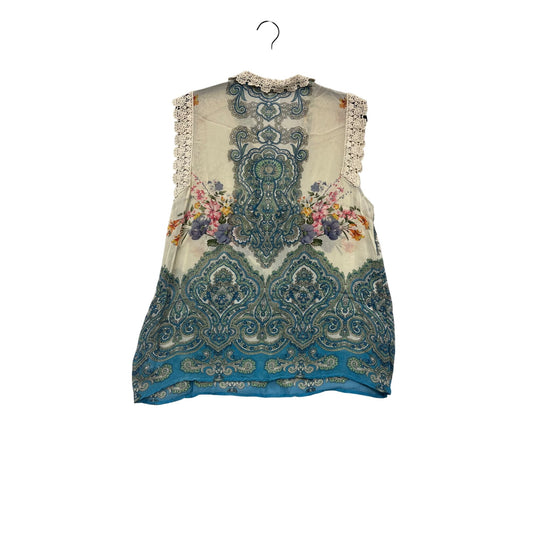 Vintage Biba Paisley Floral Lace Trim Sleeveless Blouse Rayon Boho Top #531A