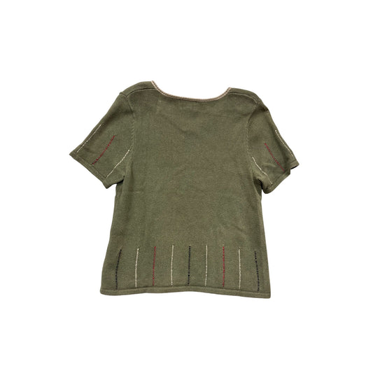 Christopher & Banks Hand Embroidered Olive Green Short Sleeve Sweater M #485A
