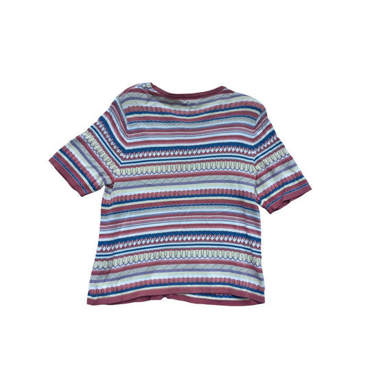 Casual Corner Red Short Sleeve Blouse With Crochet Neckline Size M #490A
