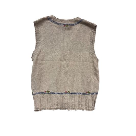 Woolrich Beige Sleeveless Knit Cardigan Vest With Floral Embroidery XL #973A