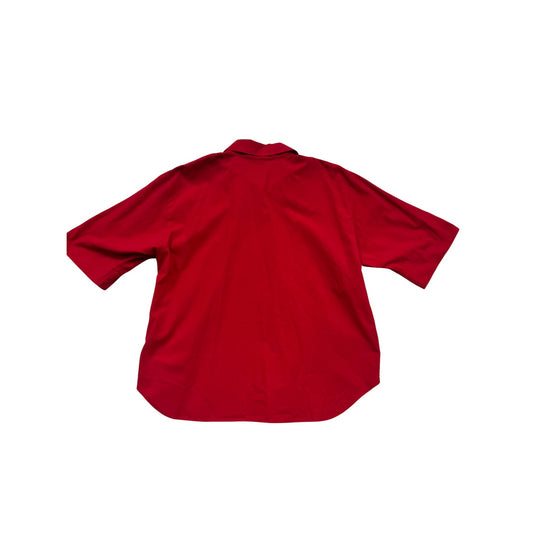 Vintage Tapestry Red Santa Print Button-Up Shirt Short Sleeve XL #105C