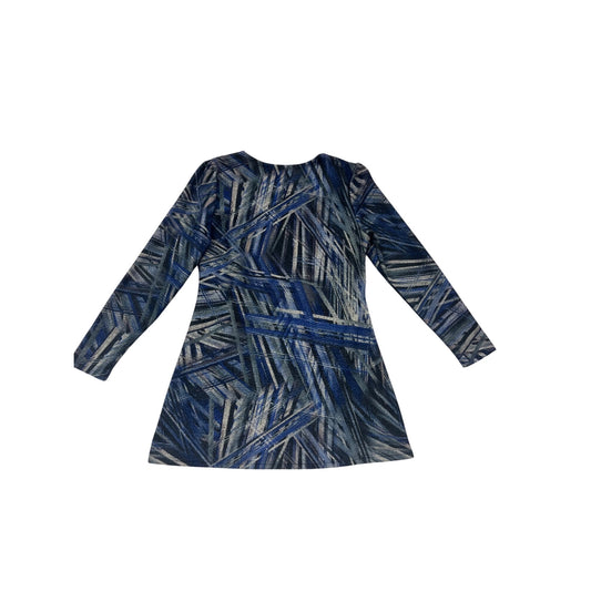 Papillon Blue Abstract Long-Sleeve A-Line Dress Large #142C