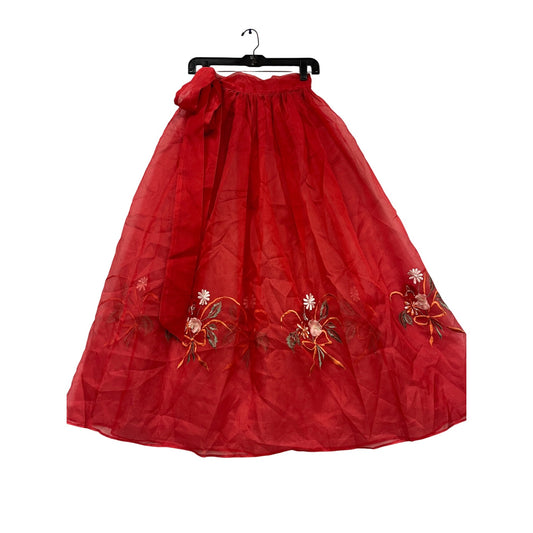 Red Embroidered Floral Mesh Skirt S/M #157C