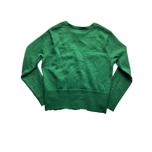 Cynthia Rowley Green 100% Merino Wool Cardigan Sweater V-Neck L #9571