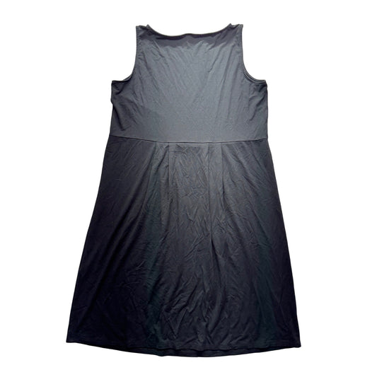 Sleek Charcoal Gray Draped Knee Length Business Dress With Pleated Skirt #9559