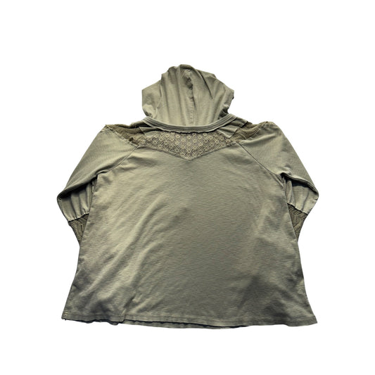 Miss Me Sage Green Hooded Top With Lace Mesh Detailed Sleeves & Back #9594