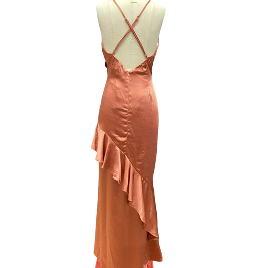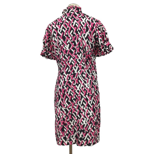 Maggy London Vintage 100% silk dress multi color print ruffles #026