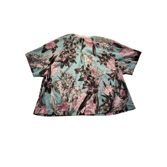 Nike Womens 2X Cropped Floral Print Mesh Top Pastel Pink & Blue Loose Fit #7196
