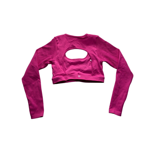 Pink Ribbed Long Sleeve Cut-Out Crop Top #7404