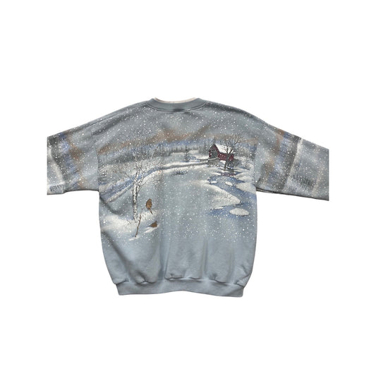 Vintage Artisans Hand-Painted Winter Scene Cardigan Sweatshirt #107C