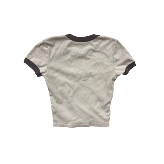 Womens XS PS/LA Beige & Brown Ringer Tee With Mushroom & Moon Graphic #6833