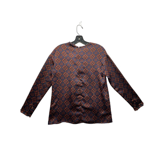 Club Monaco XS Navy & Red Geometric Print Long Sleeve Blouse #7520