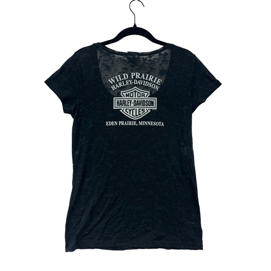 Harley-Davidson Womens Sheer Large Black Graphic Burnout T-Shirt #6490