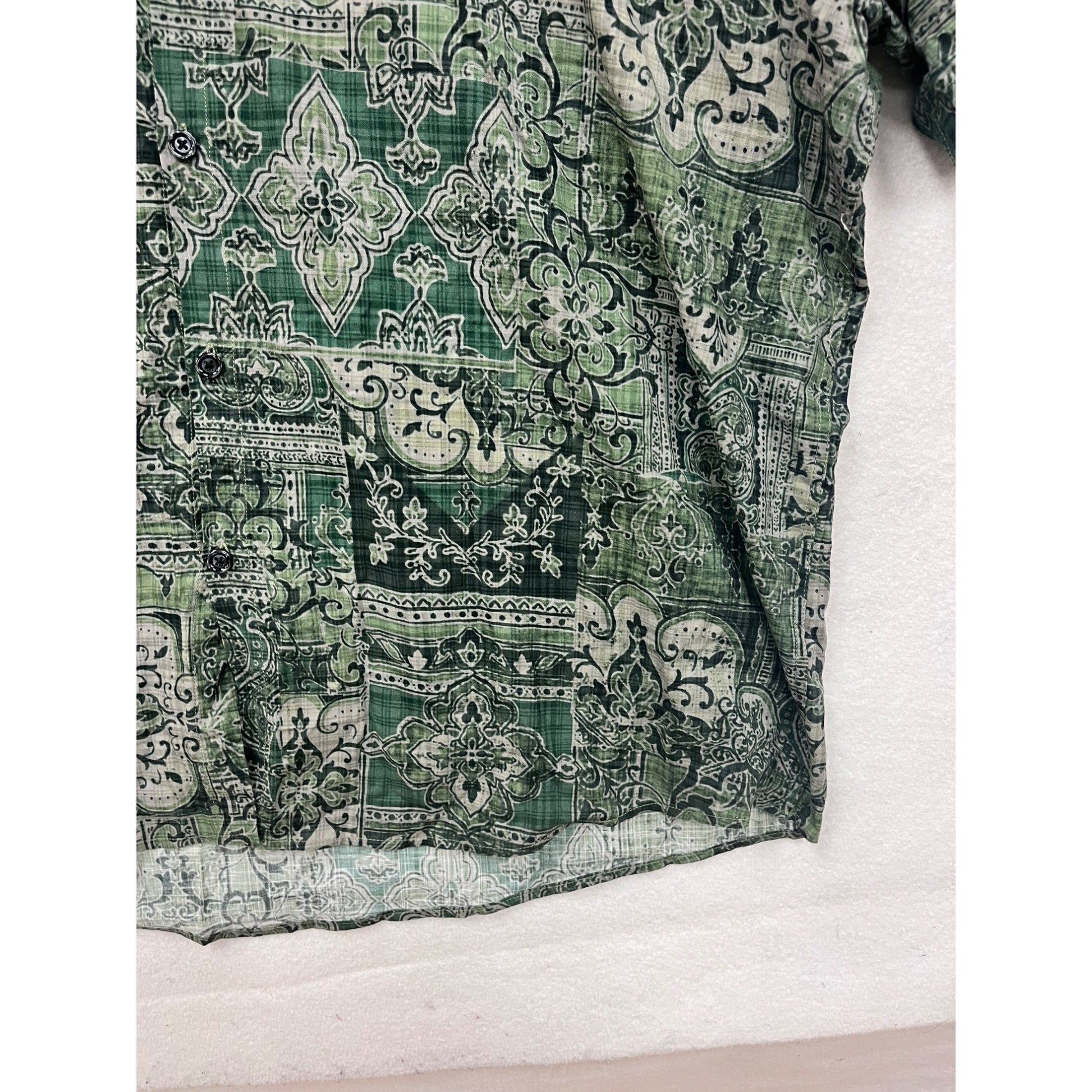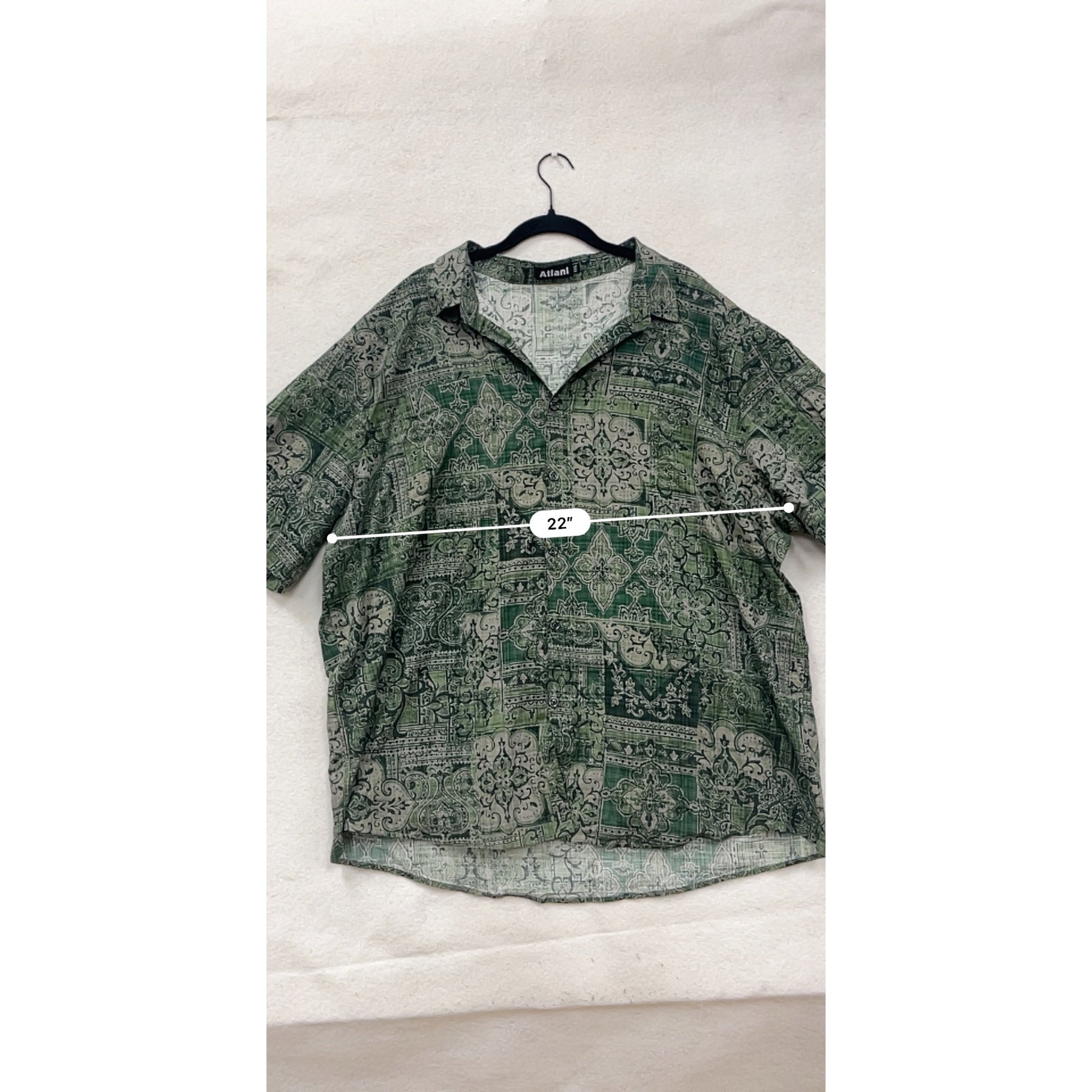 3X Atlanl Green Patterned Short Sleeve Button-Up Shirt #8719