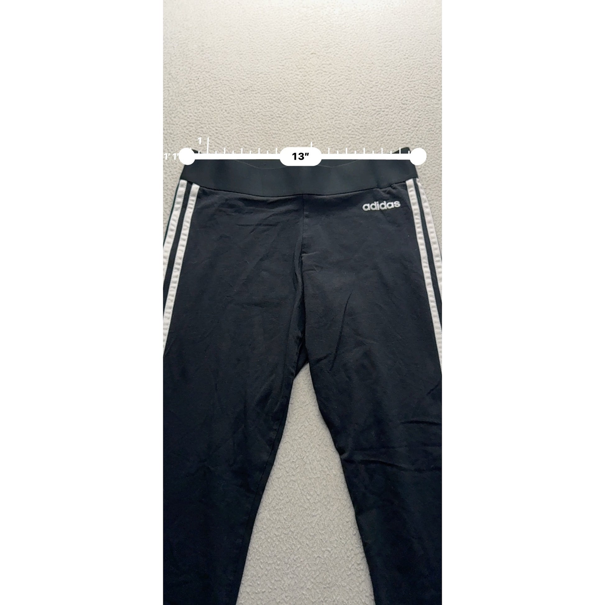 These pre-owned Adidas leggings offer a sleek design with signature white stripes, perfect for active or casual wear. Comfortable fit with durable materials.