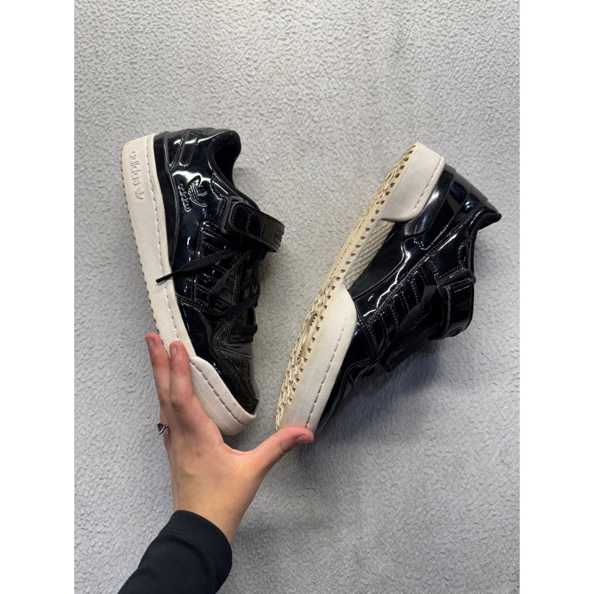 Adidas Forum Low Black Patent Leather Sneakers Size 7.5 #145B