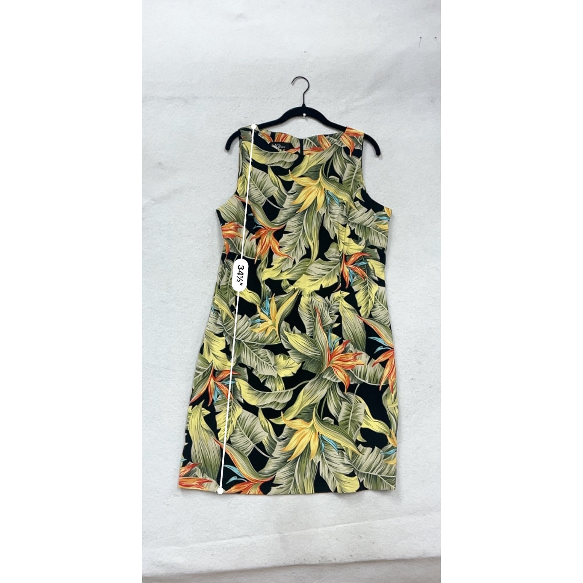 This AGB dress features a vibrant tropical floral design, crafted with a polyester and spandex blend for comfort and ease of movement. Ideal for warm days, this sleeveless dress offers a stylish and professional appearance, suitable for various occasions. Size 16 ensures a flattering fit.